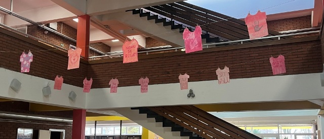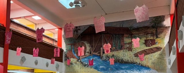 Povodom Dana ružičastih majica, učenici 5. i 6. razreda na satovima likovne kulture oslikali su i ispisali poruke podrške te ih izložili u holu škole.