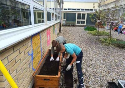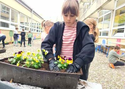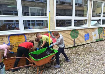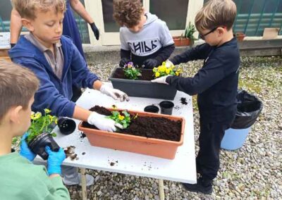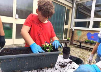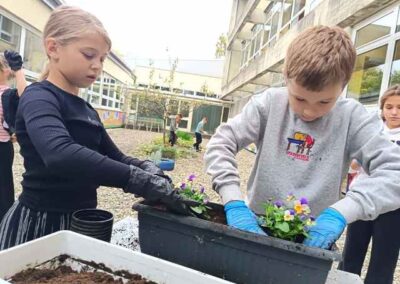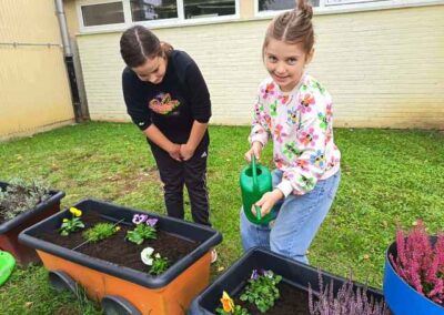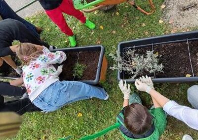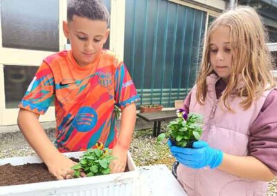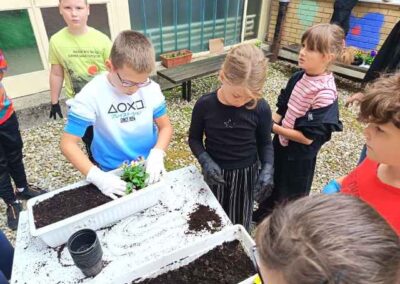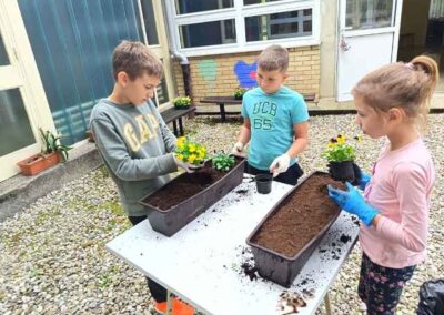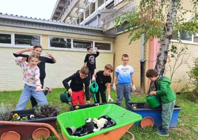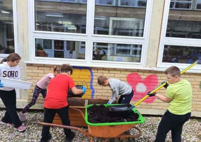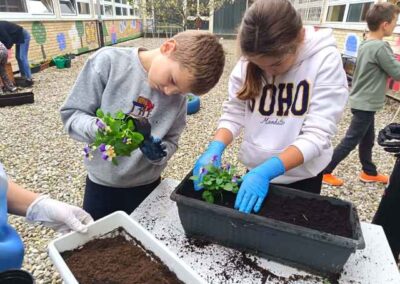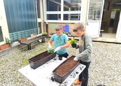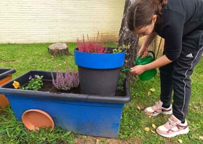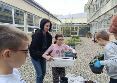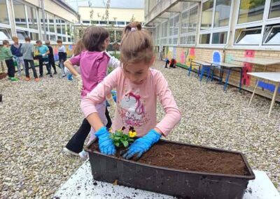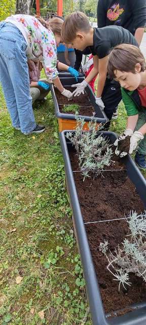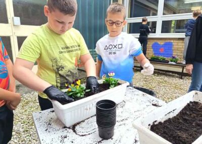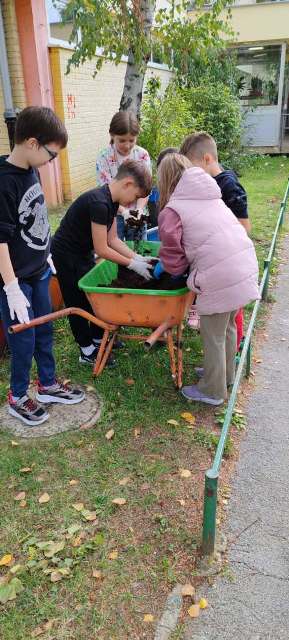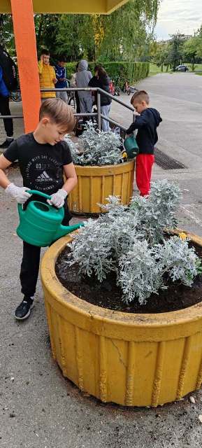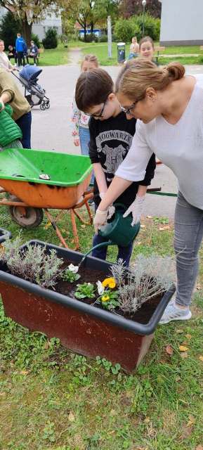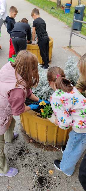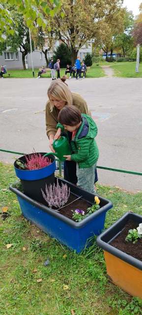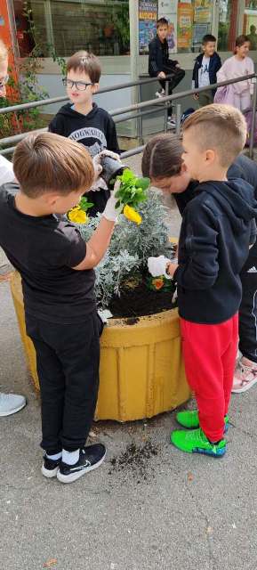 Tako su u četvrtak, 9. listopada, zajedno s učenicima posebnih razrednih odjela posadili vrijesak i maćuhice. Uz pomoć učiteljica i pomoćnica u nastavi, ponovili su školsko gradivo iz prirode i društva i uvježbali vrtlarske vještine.