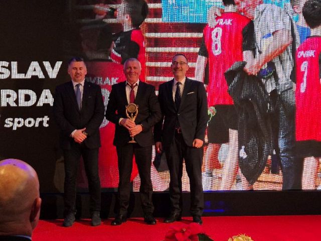 Naš dugogodišnji kolega i profesor tjelesne i zdravstvene kulture Miroslav Levarda, od ove školske godine u zasluženoj mirovini, dobitnik je Trofeja sportskog saveza Grada Zagreba za životno djelo. Nagrada mu je uručena na jučerašnjem Proglašenju sportaša Grada Zagreba za 2025. godinu.