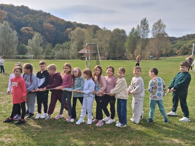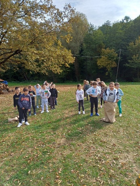 Nakon vrijednog rada uslijedile su vesele igre i natjecanja, skakanje u vreći i povlačenje užeta. Posebno ih je razveselilo hranjenje ribica u jezeru i prelazak preko drvenog mostića koji vodi do njega.