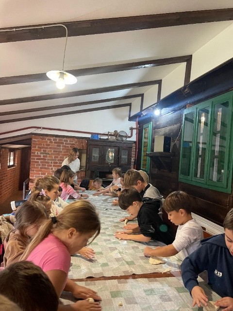Na početku izleta upoznali su različite vrste žitarica i alate kojima su se nekada obrađivala polja. Zatim su gledali kako se pravi kruh, a najzanimljiviji dio bio je kada su sami mijesili i oblikovali svoje male kruščiće koje su pekli u pravoj krušnoj peći!